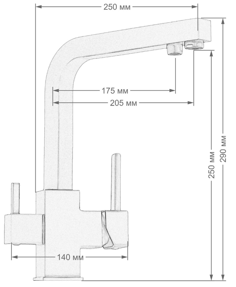 смеситель для кухни, латунь, дополнительный излив для фильтрованной воды, хром полированный