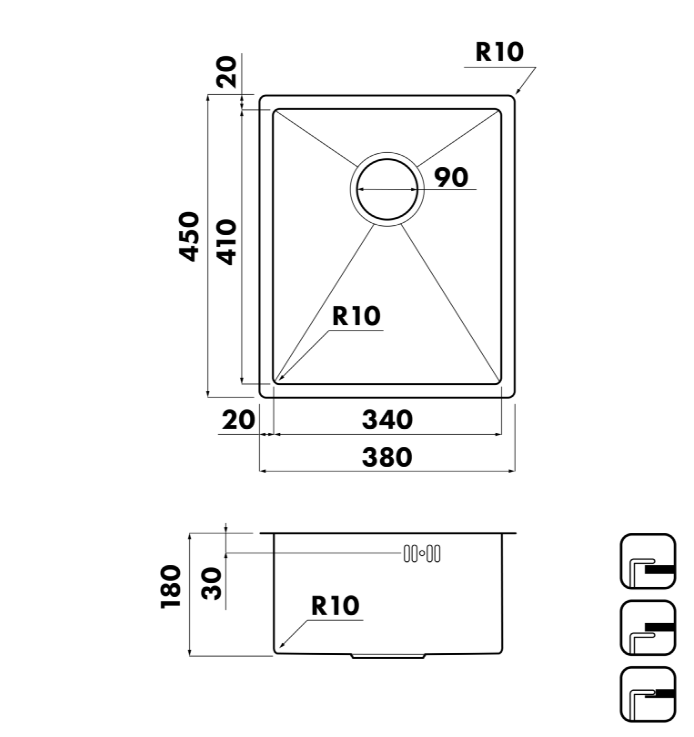 Определяет расположение крыла мойки. Выбирая вариант исполнения мойки, нужно учитывать особенности кухонного гарнитура.