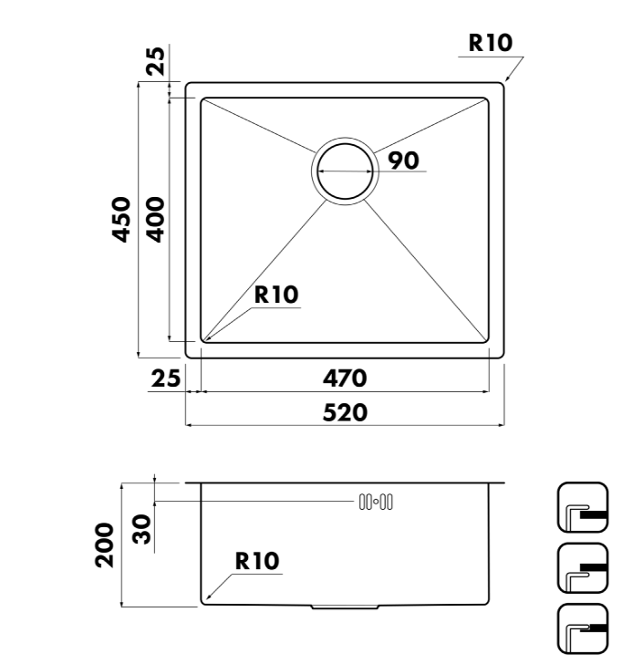 Определяет расположение крыла мойки. Выбирая вариант исполнения мойки, нужно учитывать особенности кухонного гарнитура.