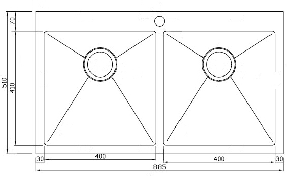 мойка, нержавеющая сталь, 880*510 мм, сатин (Slam-shut) (с вентиль-автоматом)