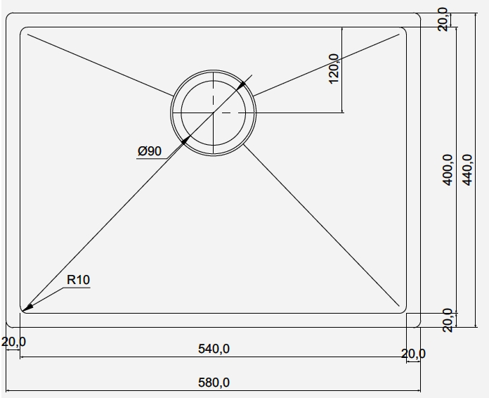 мойка, нержавеющая сталь, 580*440 мм, толщина стали 1,2 мм, сатин.