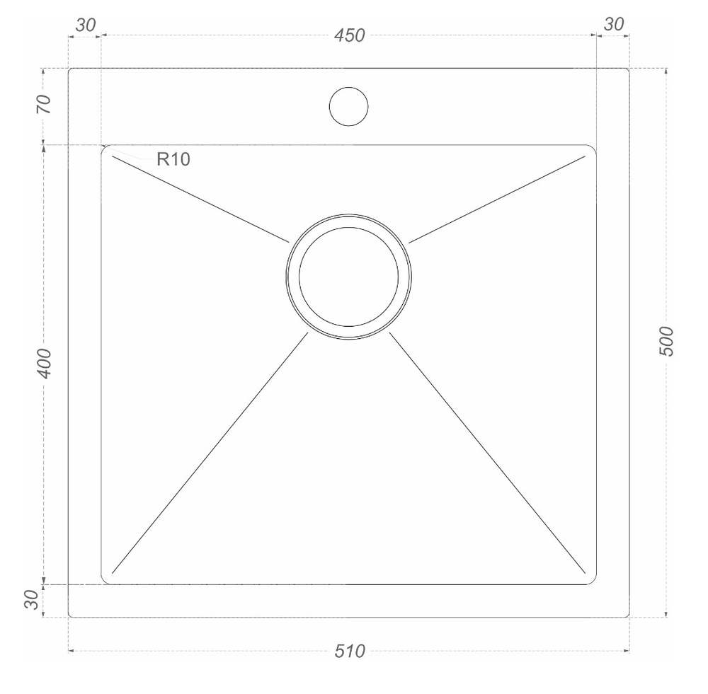 мойка, нержавеющая сталь, 510*500 мм, нержавеющая сталь