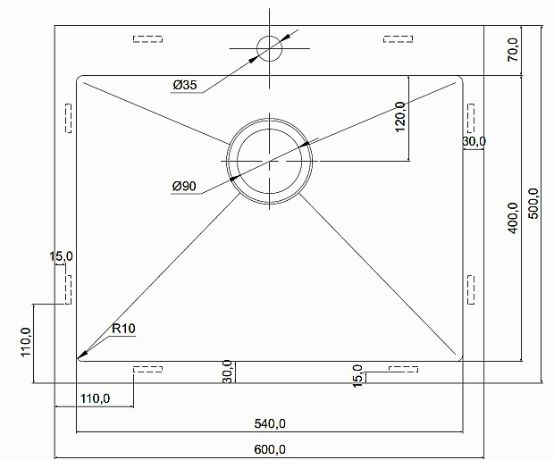 Расстояние от дна до верхней кромки чаши мойки. Оптимальная глубина — 15-18 см. Чем глубже мойка, тем меньше брызг попадет наружу.