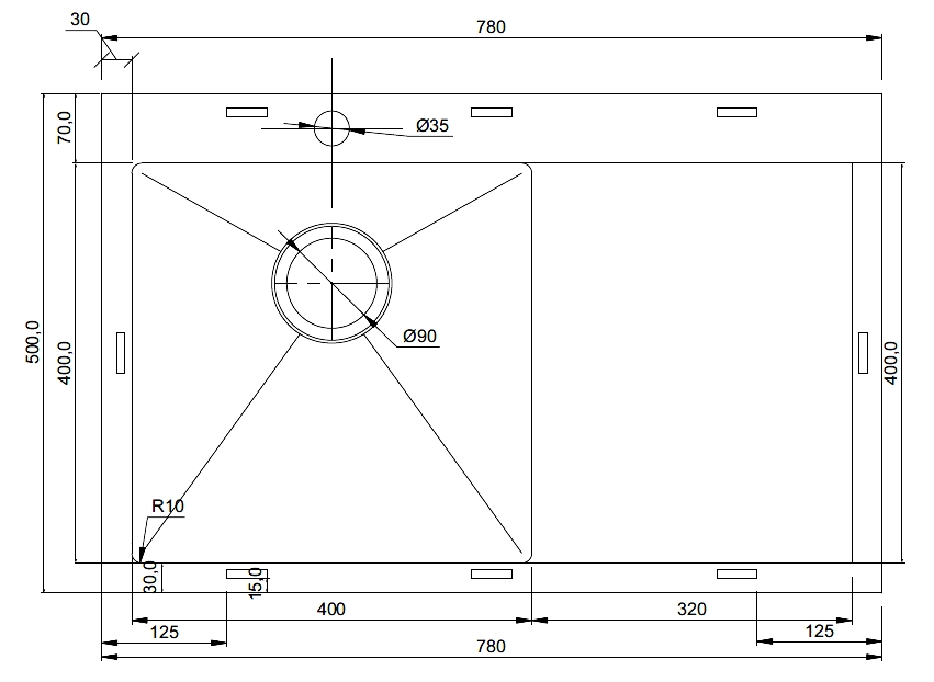 мойка, нержавеющая сталь,780*500 мм, нержавеющая сталь, правое крыло