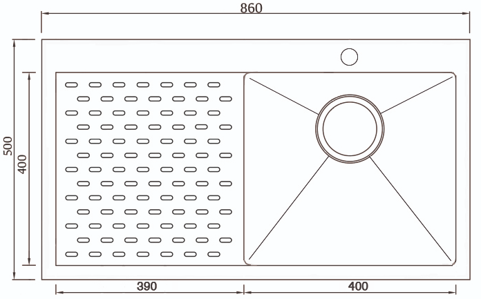 мойка, нержавеющая сталь, 860*500 мм, нержавеющая сталь