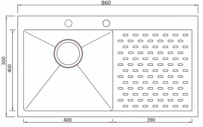 мойка, нержавеющая сталь, 860х500 мм, нержавеющая сталь сатин