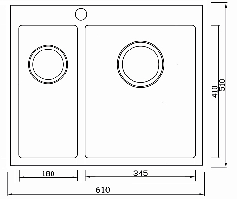 мойка, нержавеющая сталь, 610х510 мм, нержавеющая сталь сатин (с вентиль-автоматом)