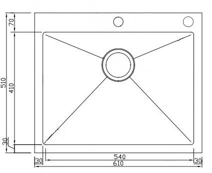 мойка, нержавеющая сталь, 610х510 мм, нержавеющая сталь сатин (с вентиль-автоматом)