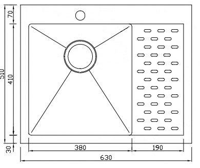 мойка, нержавеющая сталь, 630х510 мм, нержавеющая сталь сатин
