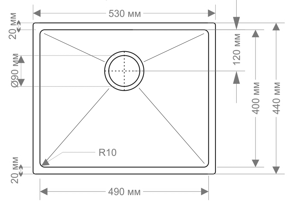 мойка, нержавеющая сталь, 530х440 мм, оружейная сталь светлая