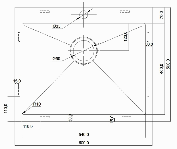 мойка, нержавеющая сталь, 600х500 мм, светлая оружейная сталь