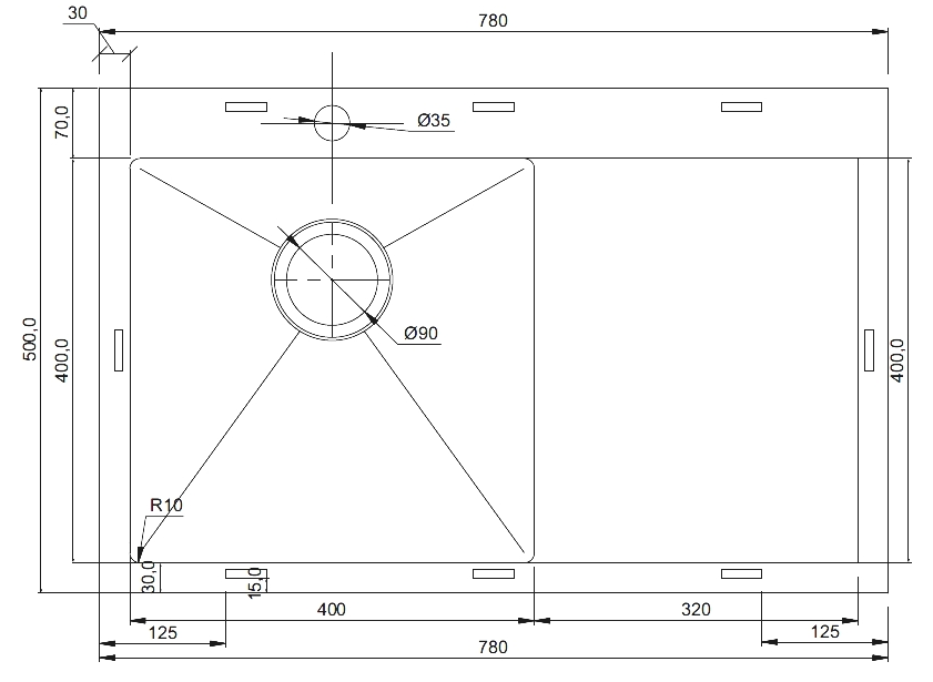 мойка, нержавеющая сталь, 780х500 мм, оружейная сталь темная
