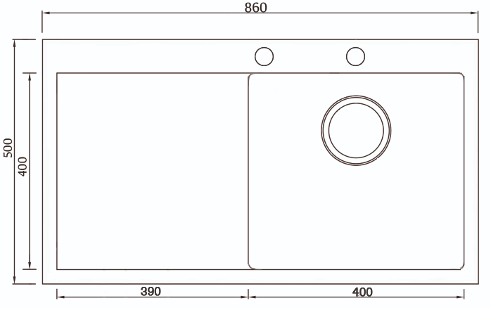мойка, нержавеющая сталь, 860х500 мм, нержавеющая сталь сатин (с вентиль-автоматом)