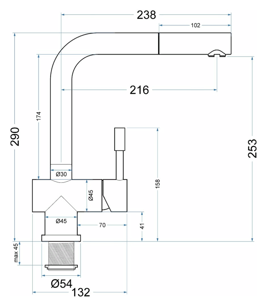 смеситель для кухни, нержавеющая сталь, высокий выдвижной излив, темная оружейная сталь