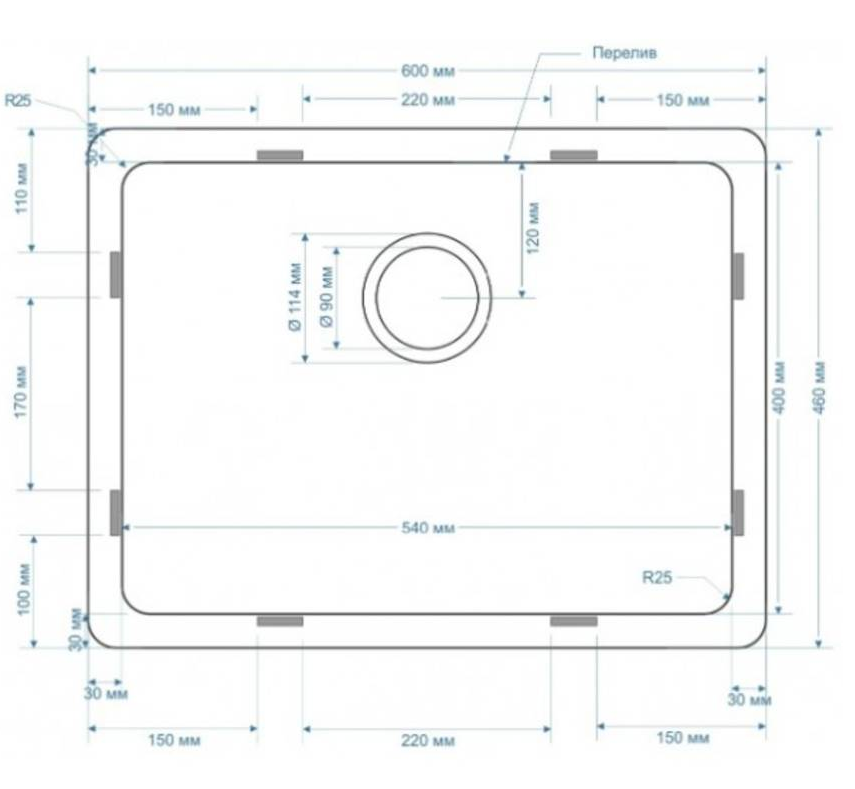 Расстояние от дна до верхней кромки чаши мойки. Оптимальная глубина — 15-18 см. Чем глубже мойка, тем меньше брызг попадет наружу.