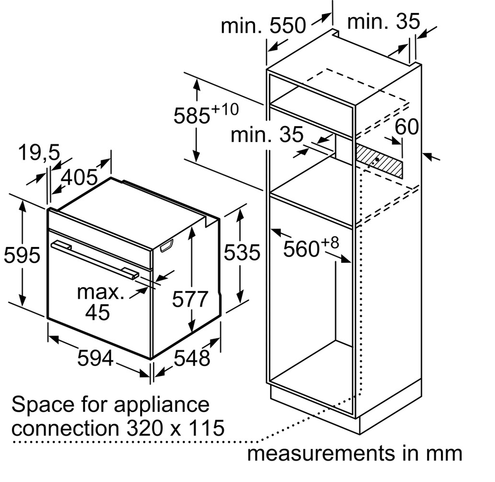 Ширина корпуса электроприбора. Особенно важно точно знать точную допустимую ширину для встраиваемой техники.