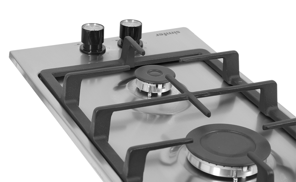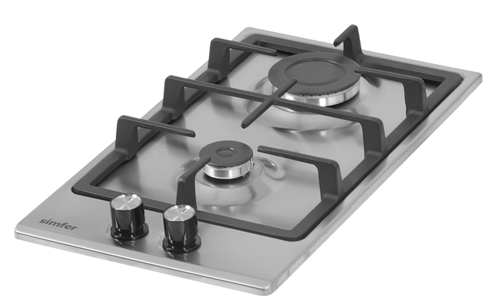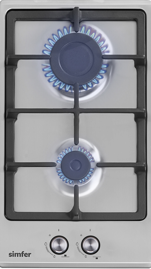 поверхность газовая, 30 см, газ на металле, 2 конфорки, решетки чугунные, нержавеющая сталь