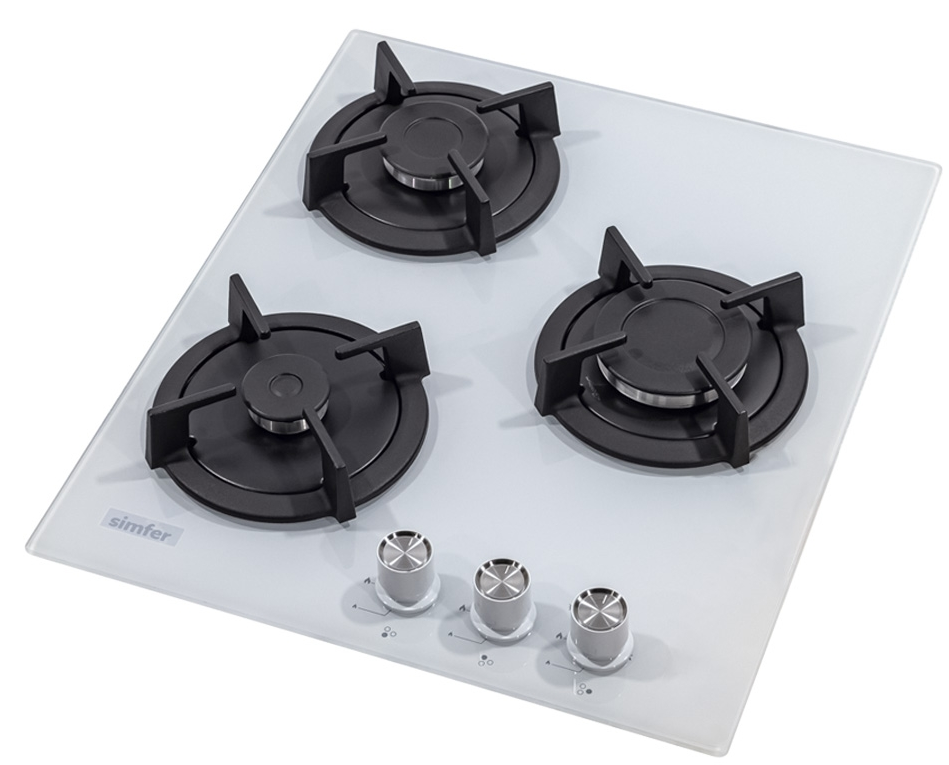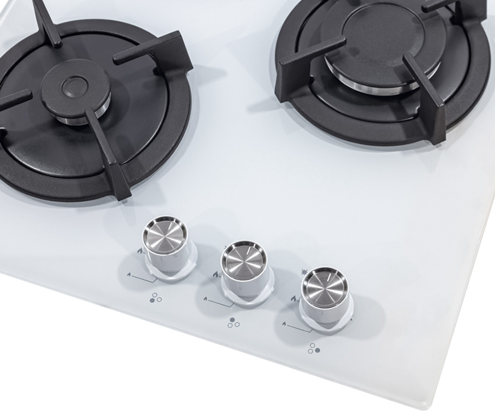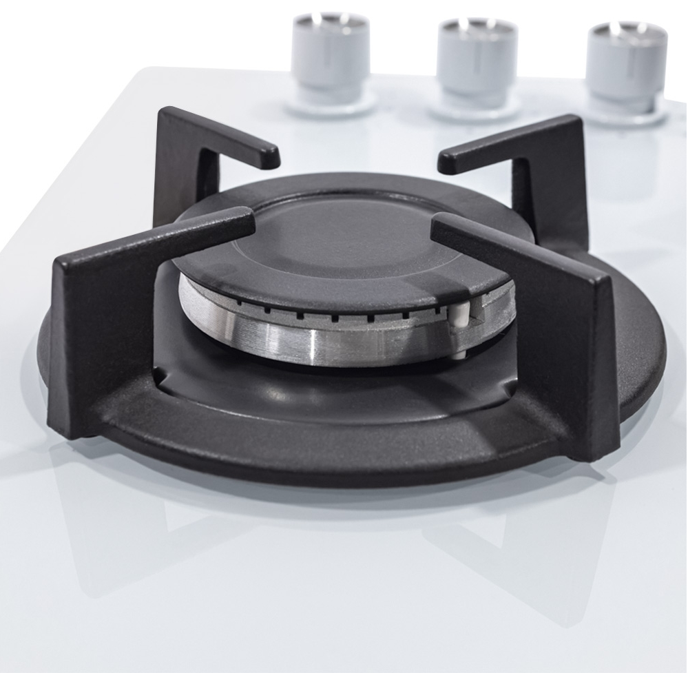поверхность газовая, 45 см, газ на стекле, 3 конфорки, решетки чугунные, белый