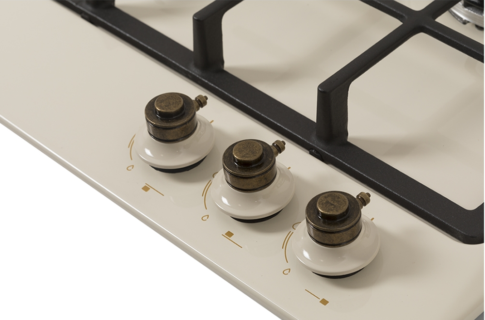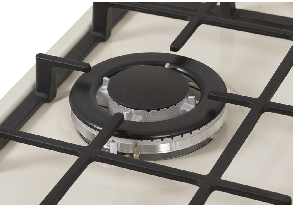 поверхность газовая, 45 см, газ на эмали, 3 конфорки, решетки чугунные, бежевый/бронза