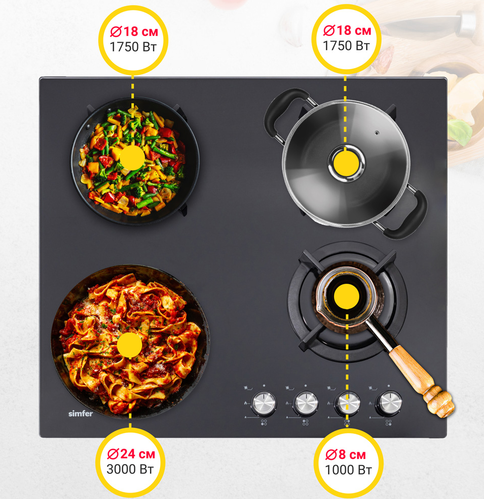 Приборы могут имеют разное количество газовых, электрических и индукционных конфорок. Выбирайте оптимальный вариант для комфортной готовки.