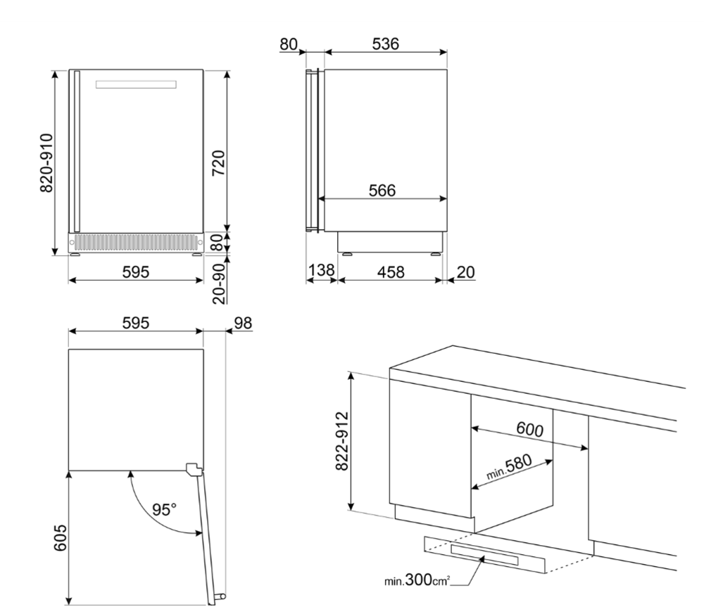 винный шкаф встраиваемый, 114 л, 59,5х56,6х82,5 см, нержавеющая сталь, петли справа