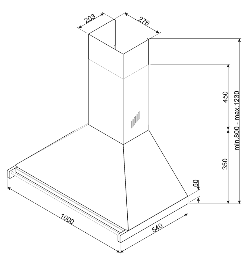 вытяжка пристенная, 100 см, 792 м3/ч, нержавеющая сталь