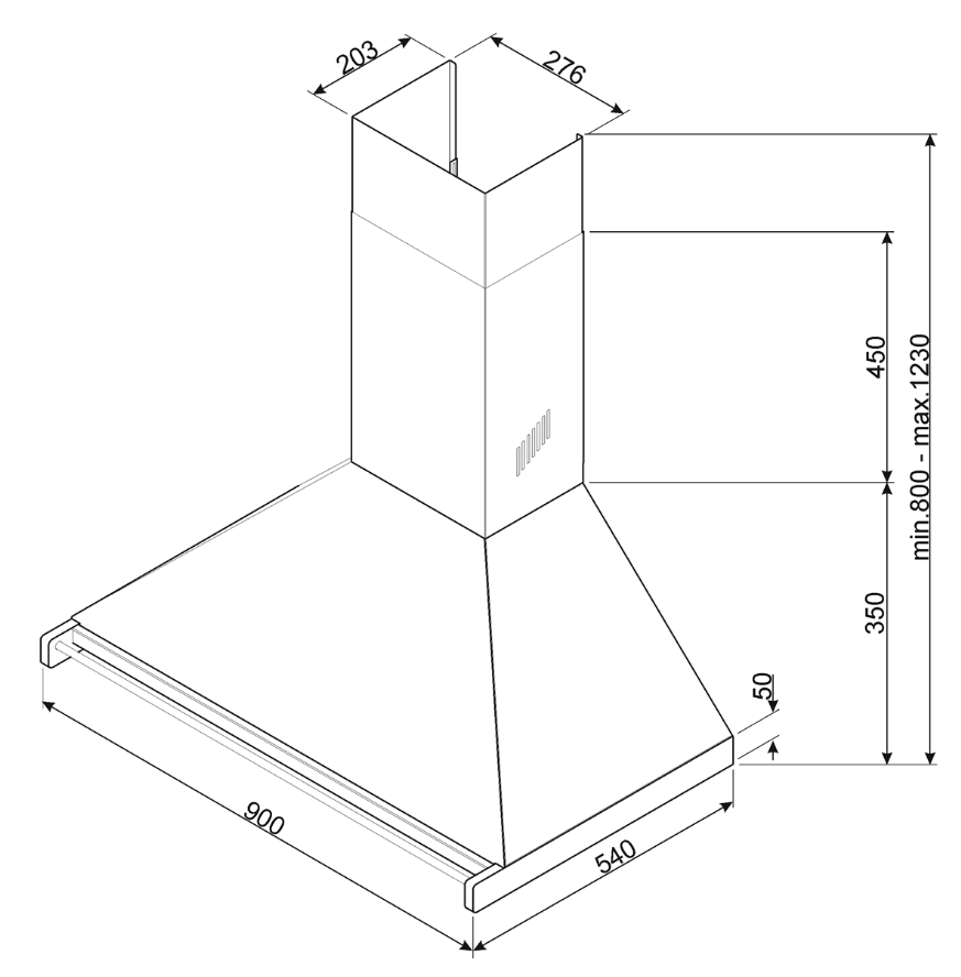вытяжка пристенная, 90 см, 781 м3/ч, нержавеющая сталь