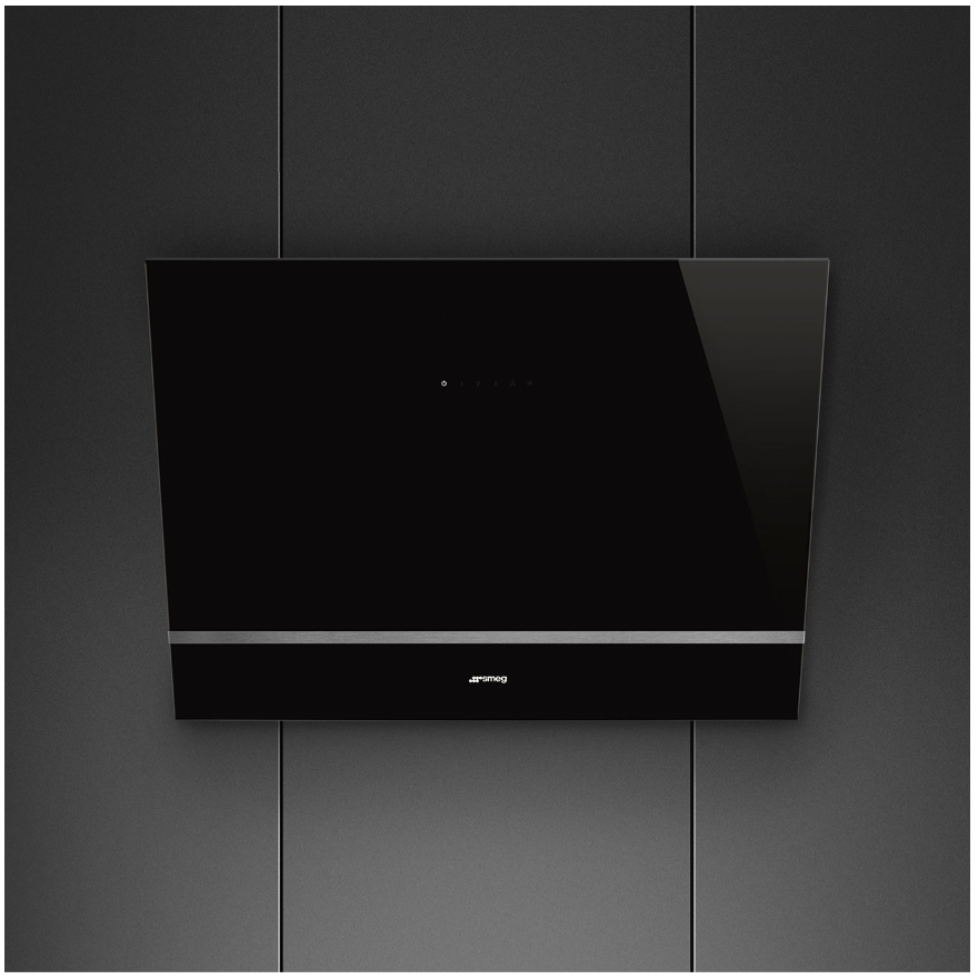 вытяжка наклонная, 80 см, 666 м3/ч, черное стекло + нержавеющая сталь