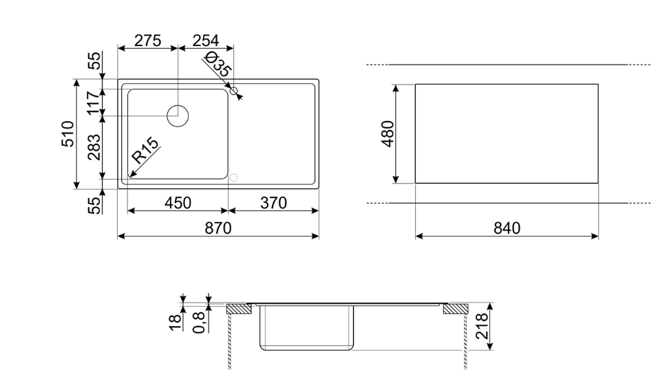 мойка, нержавеющая сталь, 870х510 мм, нержавеющая сталь матовая