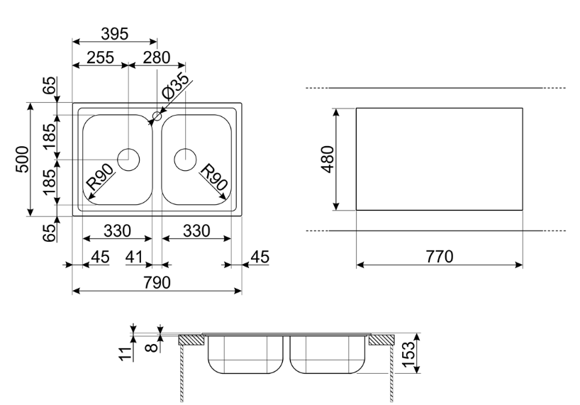 Определяет расположение крыла мойки. Выбирая вариант исполнения мойки, нужно учитывать особенности кухонного гарнитура.