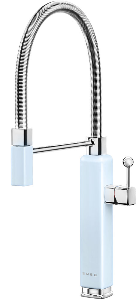 смеситель для кухни, латунь, поворотный выдвижной излив, пастельный голубой/хром