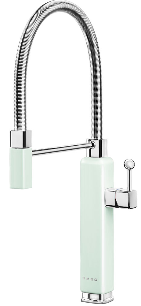 смеситель для кухни, латунь, поворотный выдвижной излив, зеленый/хром