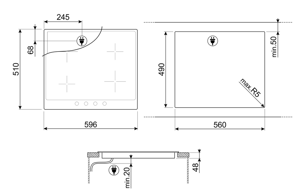 Расположение панели управления варочной поверхностью относительно конфорок. Если панель расположена сбоку, она будет справа.