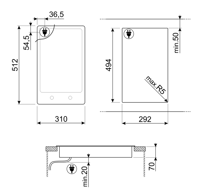 Характер огранки фаски на внешней стороне варочной панели. Металлические рамки предотвращают забивание монтажных швов крошками и пылью.