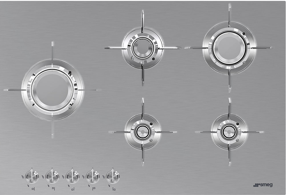 поверхность газовая, 75 см, газ на металле, 5 конфорок, решетки нержавеющая сталь с титановым покрытием, нержавеющая сталь