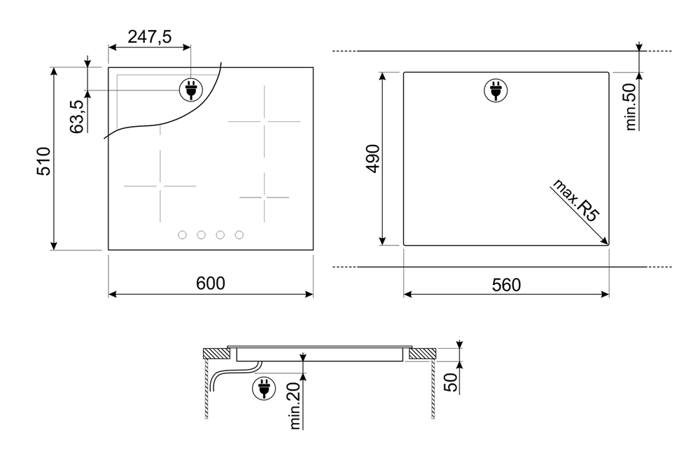 поверхность варочная стеклокерамическая, 60 см, черный, скошенные края