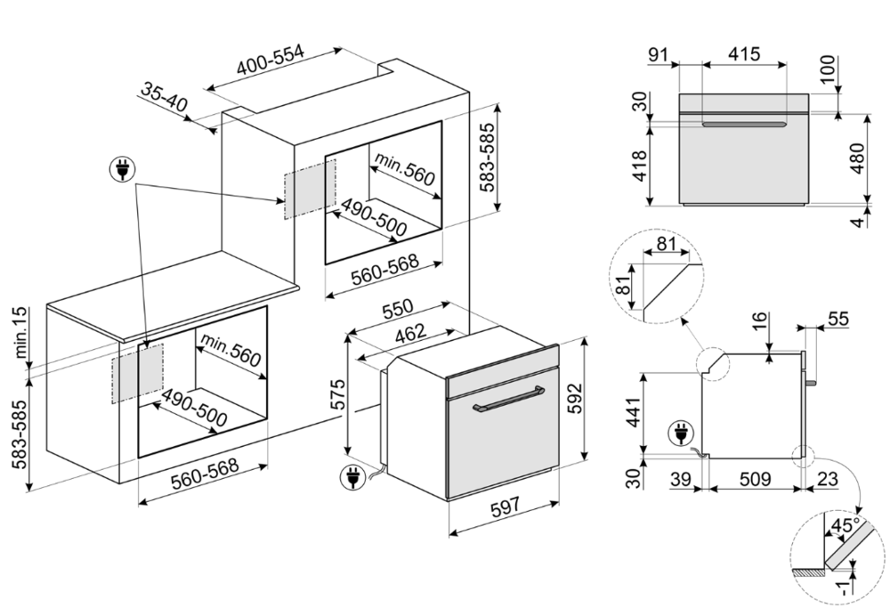 Ширина корпуса электроприбора. Особенно важно точно знать точную допустимую ширину для встраиваемой техники.