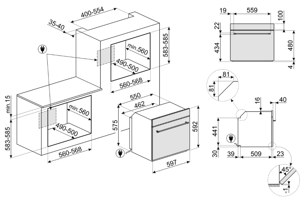 Ширина корпуса электроприбора. Особенно важно точно знать точную допустимую ширину для встраиваемой техники.
