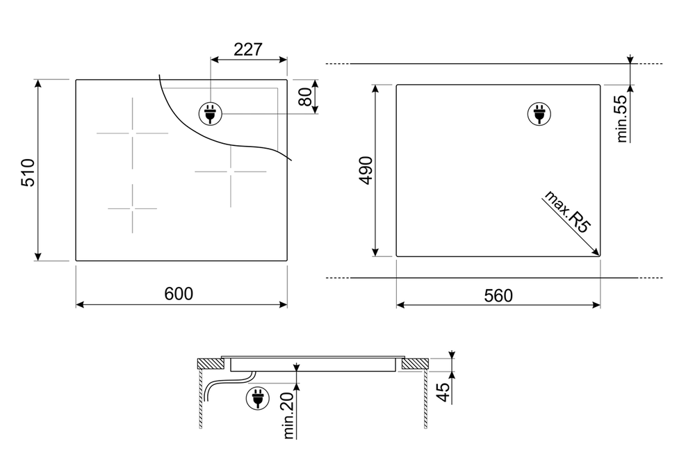 поверхность варочная стеклокерамическая индукционная, 60 см, черный, скошенный край