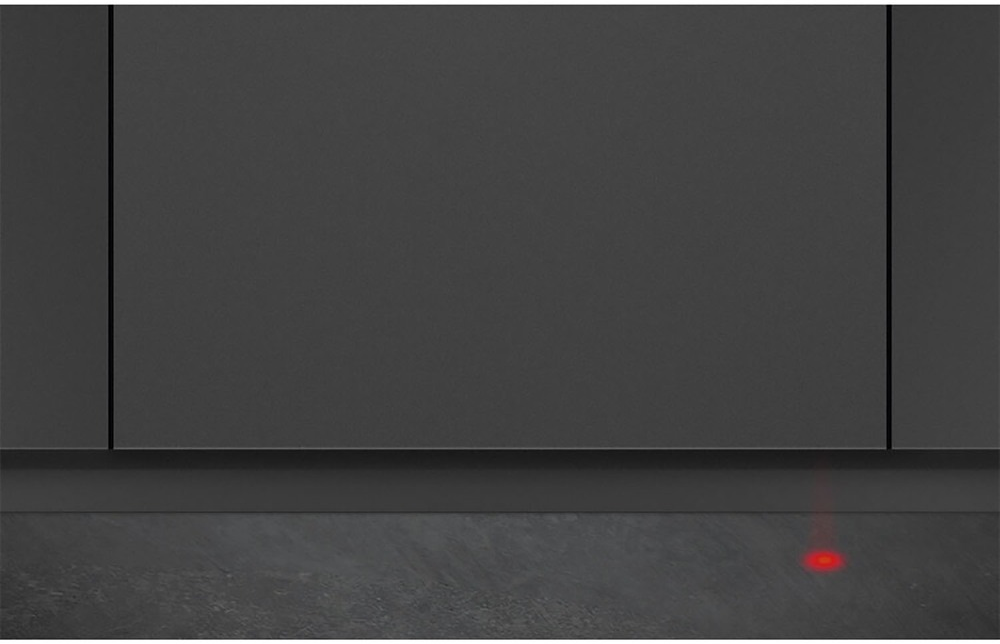 Индикация окончания программного цикла для тихих моделей. Пока посудомойка работает, цветной индикатор проецируется на полу возле дверцы.