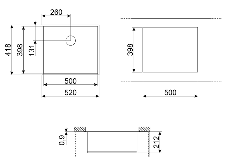 мойка для монтажа под столешницу, необорачиваемая, 520*418 мм, нержавеющая сталь