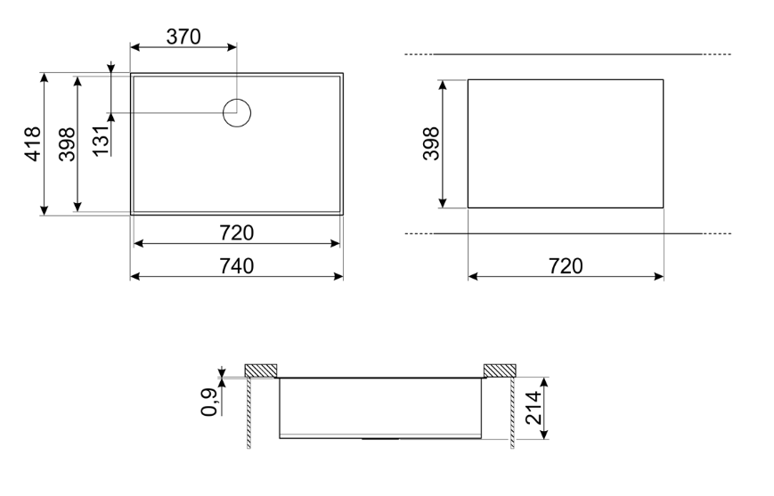 мойка для монтажа под столешницу, необорачиваемая, 740*418 мм, нержавеющая сталь