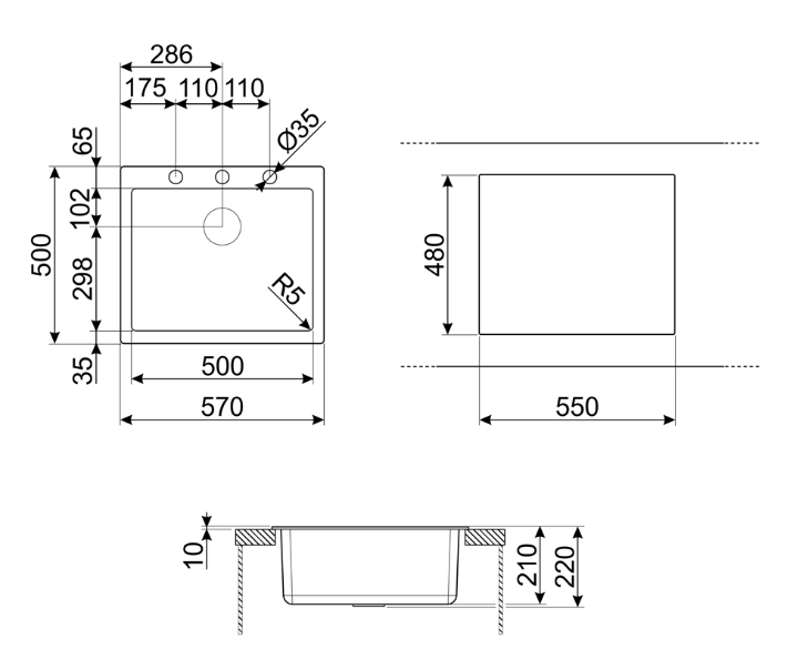 Расстояние от дна до верхней кромки чаши мойки. Оптимальная глубина — 15-18 см. Чем глубже мойка, тем меньше брызг попадет наружу.