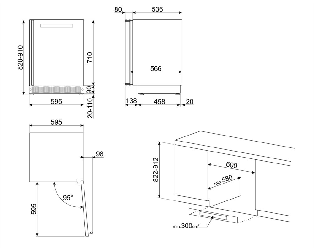 винный шкаф встраиваемый, 103 л, 59,5х56,6х82 см,