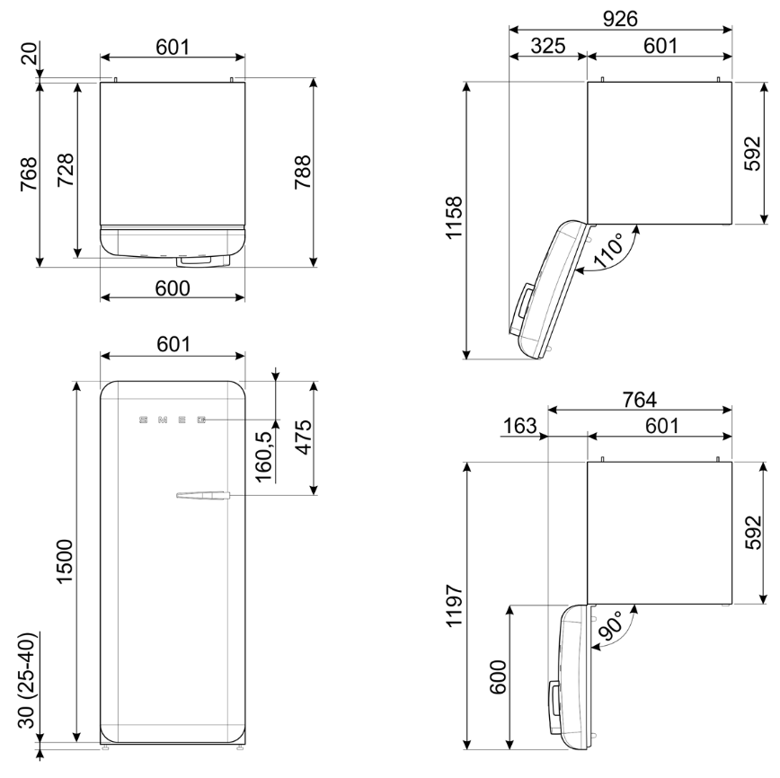 Ширина корпуса электроприбора. Особенно важно точно знать точную допустимую ширину для встраиваемой техники.