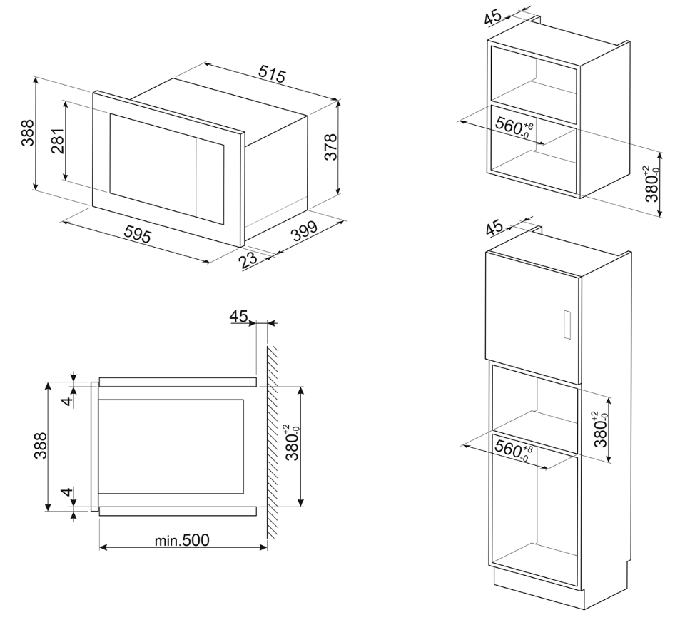 микроволновая печь встраиваемая, 25 л, 59,5x34,4x40,1 см, черное стекло