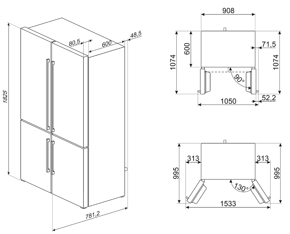 Smeg FQ60NDE Холодильник Side-by-Side отдельностоящий