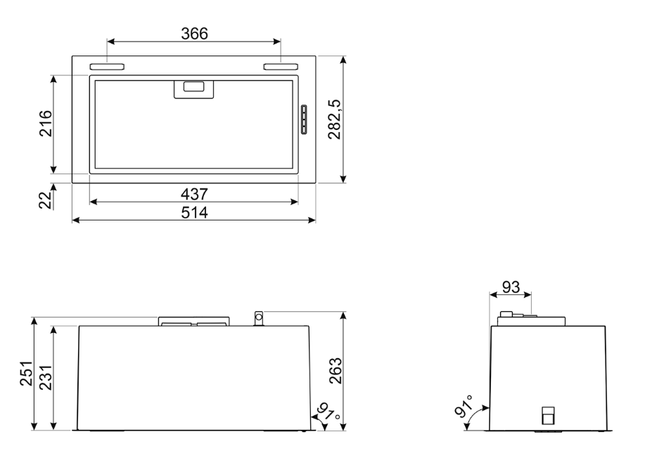 вытяжка встраиваемая в подвесной шкаф, 52 см, 584 м3/ч, нержавеющая сталь