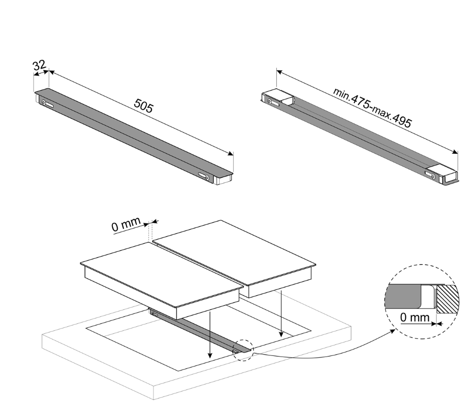 соединительный элемент для всех типов варочных поверхностей с прямым краем, нержавеющая сталь