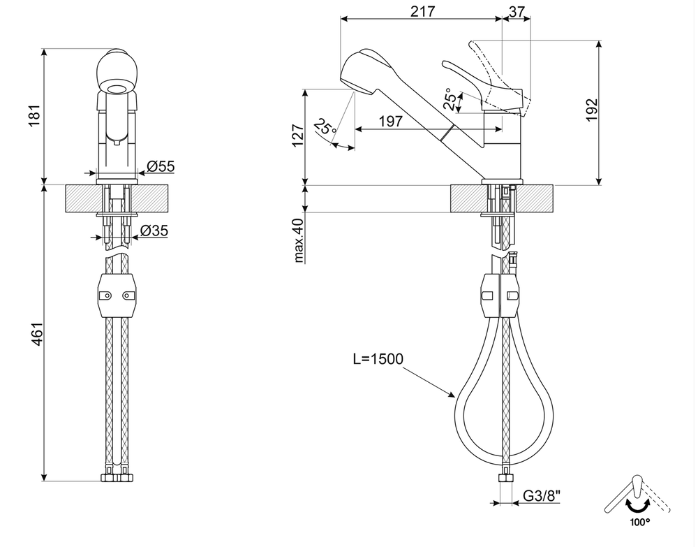 смеситель для кухни, латунь, выдвижной поворотный излив, хром